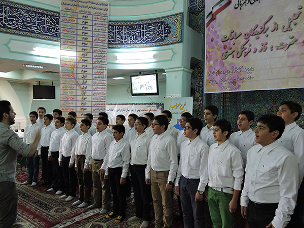 یکی از برنامه های این مراسم اجرای گروه سرود برتر منطقه یعنی گروه سرود مدرسه دانش قلهک بود. مثل همیشه استاد مرحبای عزیز مربی خوب گروه سرود تذکراتی رو به اعضای گروه قبل از اجرا داشتند.