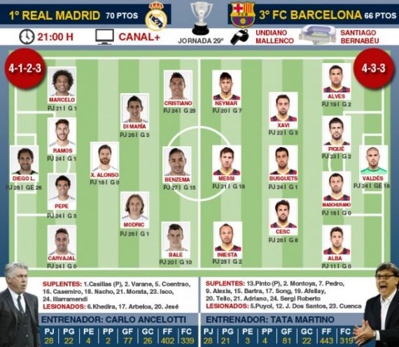 به گزارش سایت خبری ولگردی به نقل از تسنیم، فدراسیون فوتبال اسپانیا روز و ساعت بازیهای هفته نهم لیگ دسته اول این کشور (لالیگا) را اعلام کرد که بر طبق آن تیمهای فوتبال رئال مادرید و بارسلونا جدال سنتی دو قطب فوتبال اسپانیا موسوم به الکلاسیکو را روز شنبه ۲۵ اکتبر ۲۰۱۴ (۳ آبان ۱۳۹۳) از ساعت ۱۸ به وقت محلی (۲۱:۳۰ به وقت تهران) در ورزشگاه سانتیاگوبرنابئوی شهر مادرید برگزار خواهند کرد.