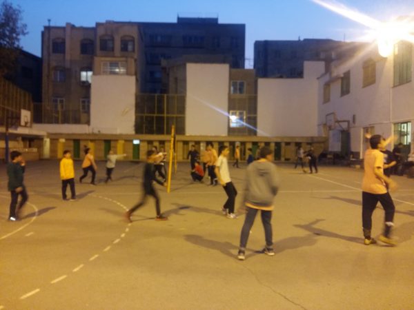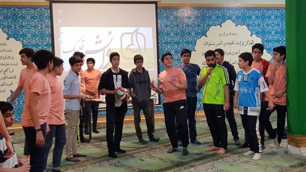 فوتبال و بسکتبال بازی کردن بچه ها در ابتدای برنامه
