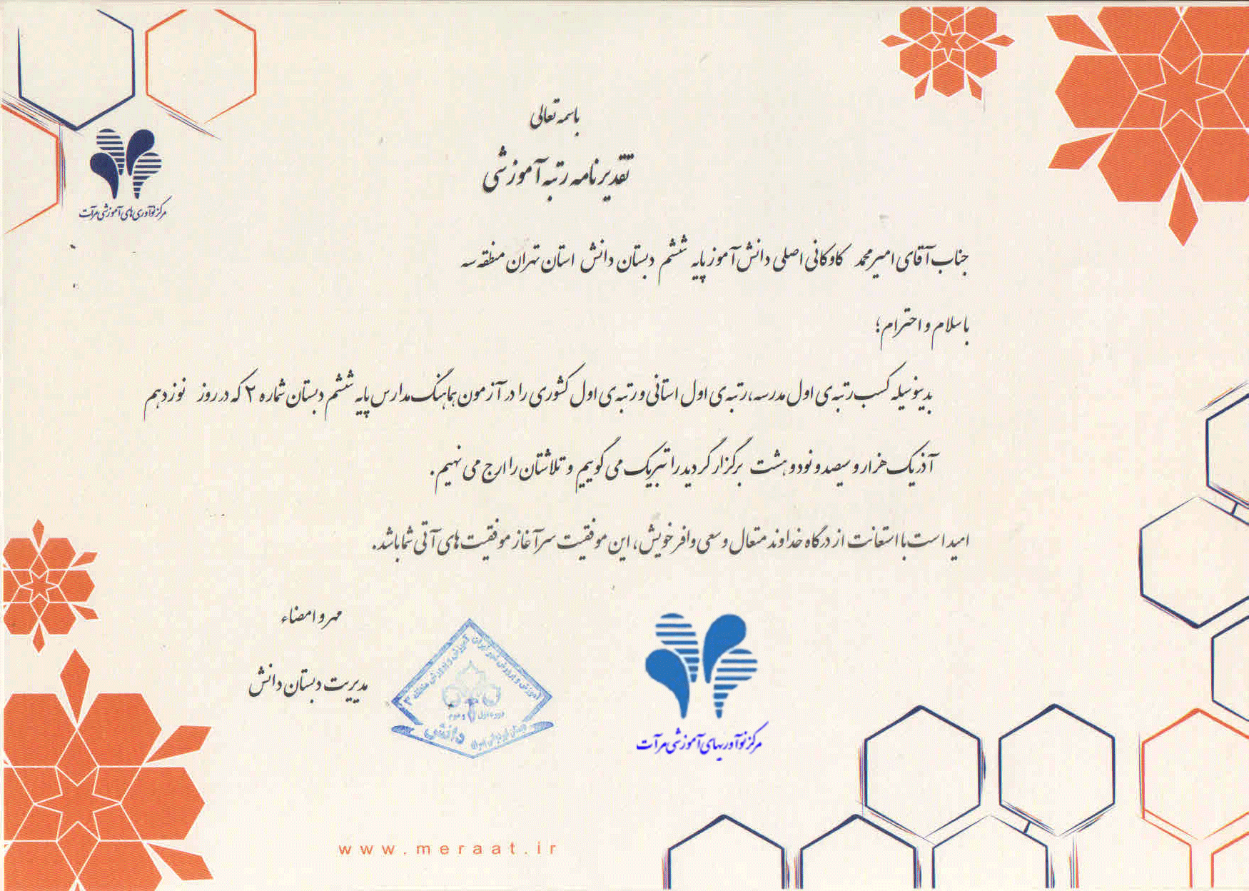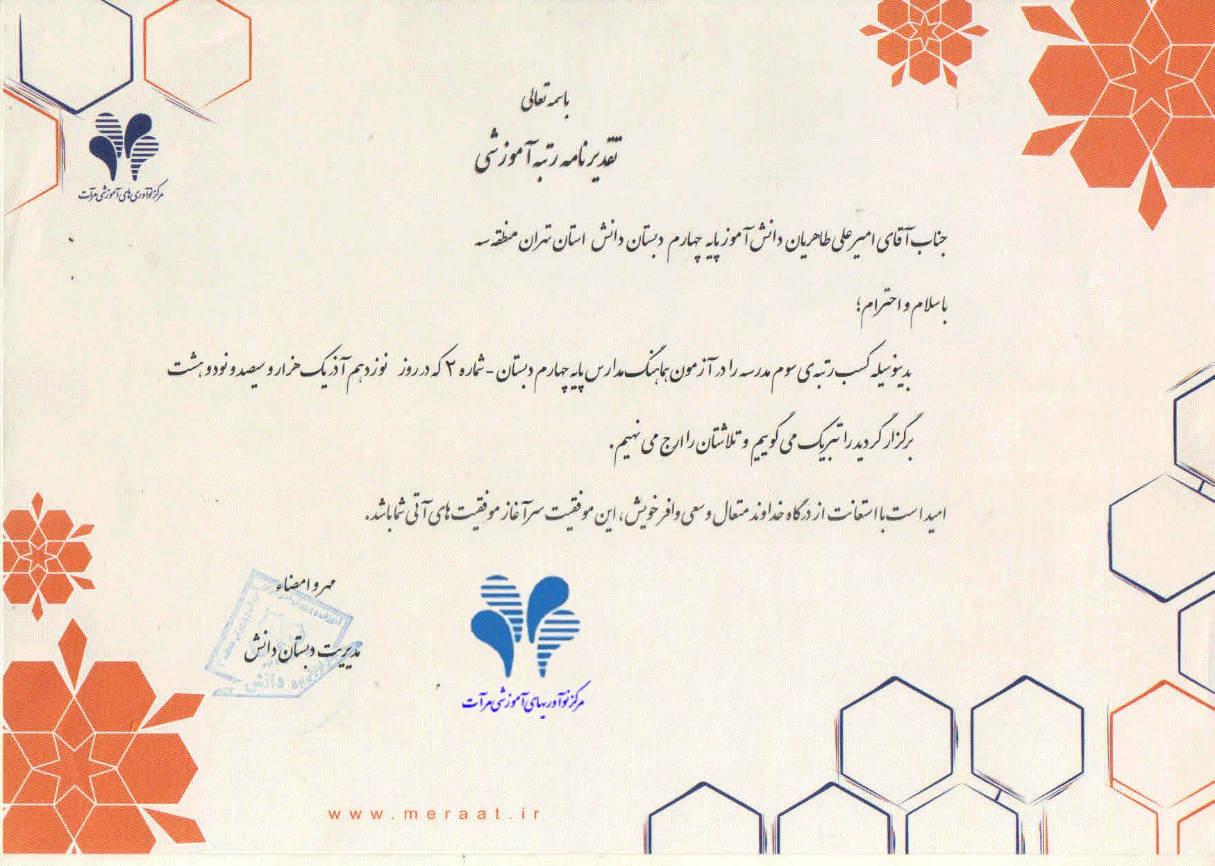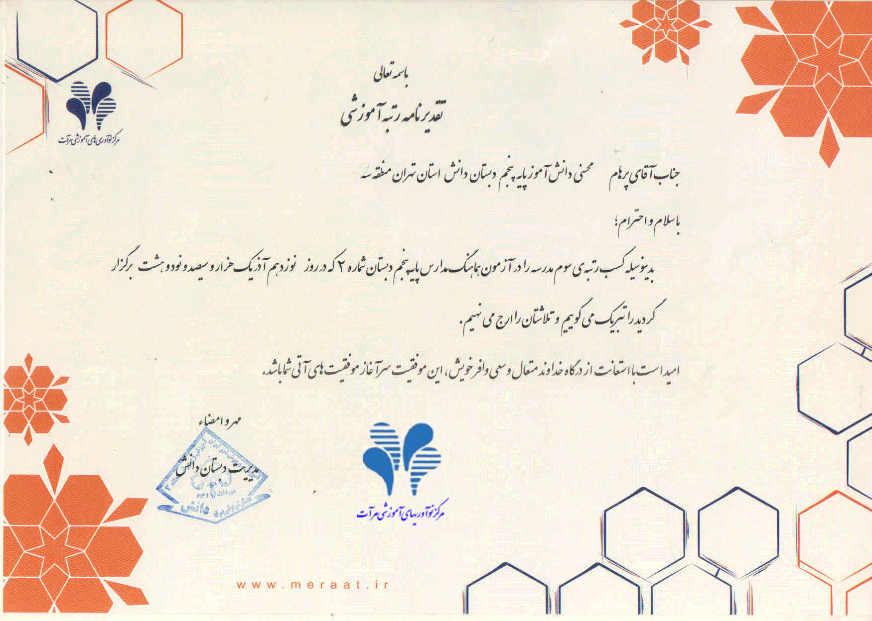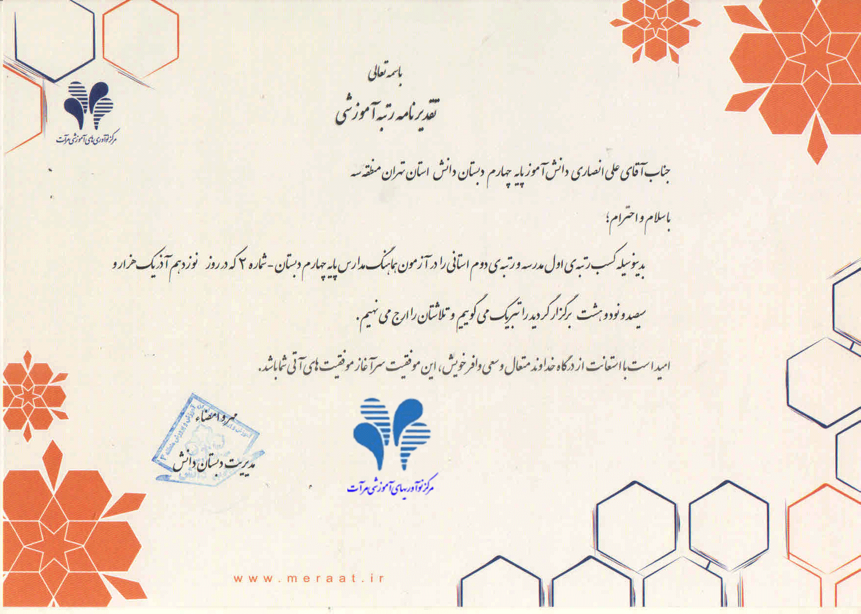 دسته بندی: دستهبندی نشدهتوسط دبستان پسرانه دانشدسامبر 28, 2019ارسال دیدگاه نویسنده: دبستان پسرانه دانش ناوبری نوشتهقبلینوشته قبلی:برگزیدگان آزمون کشوری مرآت 2بعدینوشته بعدی:تقدیرنامه مرآت برای مدیریت دبستان دانشRelated Postsهوش اخلاقیژانویه 16, 2022جشن پیش دبستان 1400ژانویه 11, 2022جشن الفبا 1400ژانویه 11, 2022۱۴۰۰-۱۴۰۱دسامبر 24, 2021جشن یلدادسامبر 24, 2021یلدا ۱۴۰۰دسامبر 24, 2021