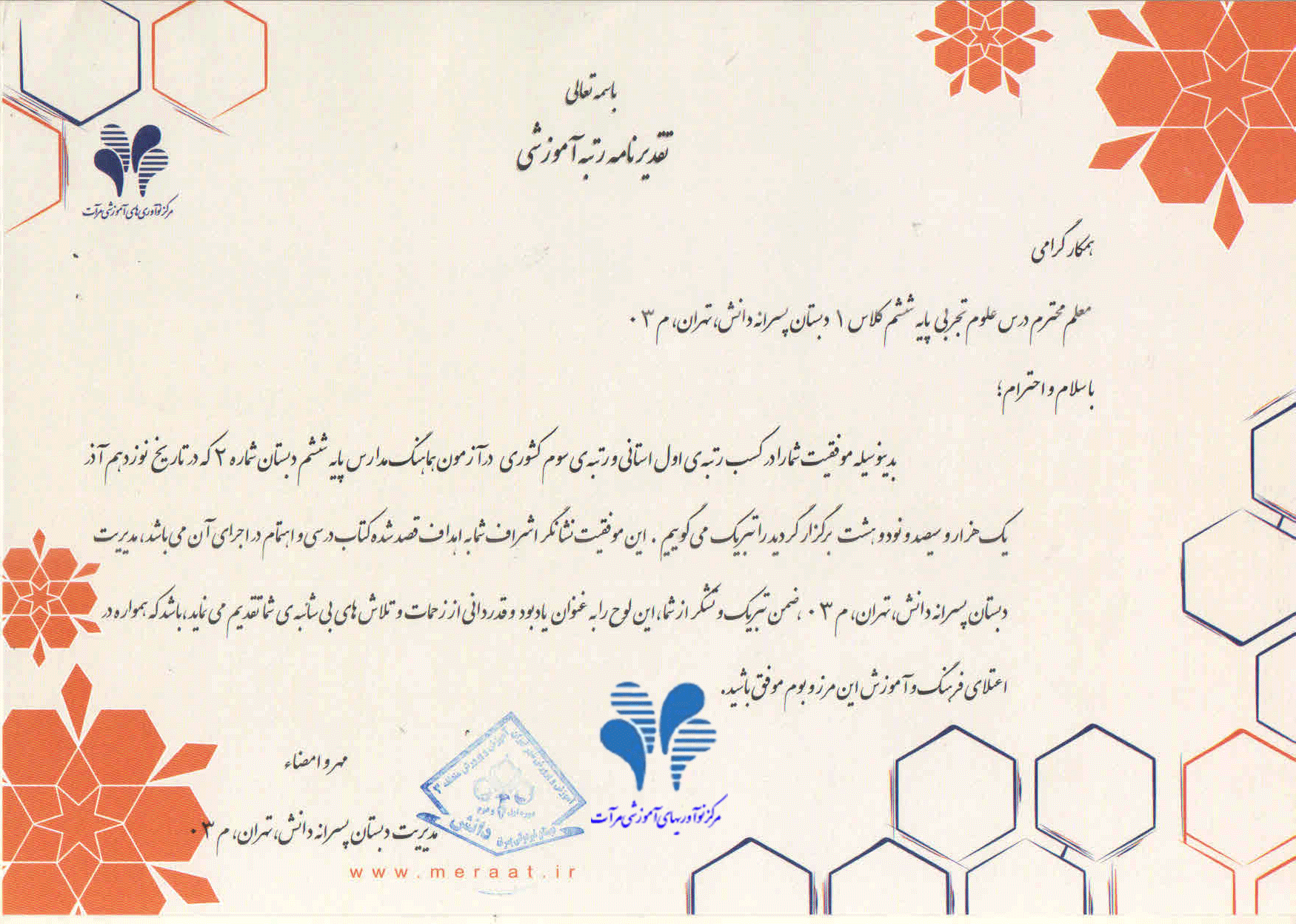 دسته بندی: دستهبندی نشدهتوسط دبستان پسرانه دانشدسامبر 28, 2019ارسال دیدگاه نویسنده: دبستان پسرانه دانش ناوبری نوشتهقبلینوشته قبلی:تقدیرنامه مرآت برای مدیریت دبستان دانشبعدینوشته بعدی:عکسهای پایه دومRelated Postsهوش اخلاقیژانویه 16, 2022جشن پیش دبستان 1400ژانویه 11, 2022جشن الفبا 1400ژانویه 11, 2022۱۴۰۰-۱۴۰۱دسامبر 24, 2021جشن یلدادسامبر 24, 2021یلدا ۱۴۰۰دسامبر 24, 2021