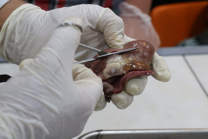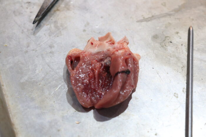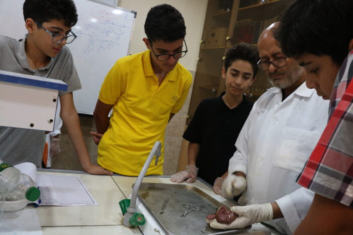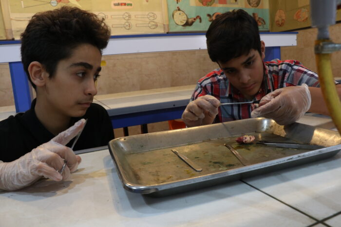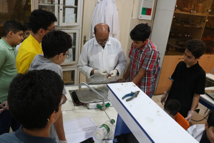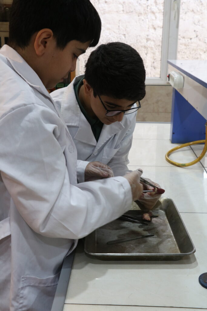 در جلسه پایانی، دانشآموزان ابتدا قلب گوسفند – که شباهت زیادی به قلب انسان دارد – را تشریح کردند و سپس قلب مرغ را مورد بررسی قرار دادند. این فعالیت باعث شد هم با اصول و روشهای صحیح تشریح آشنا شوند و هم بتوانند شباهتها و تفاوتهای قلب پرندگان و پستانداران را مقایسه کنند.