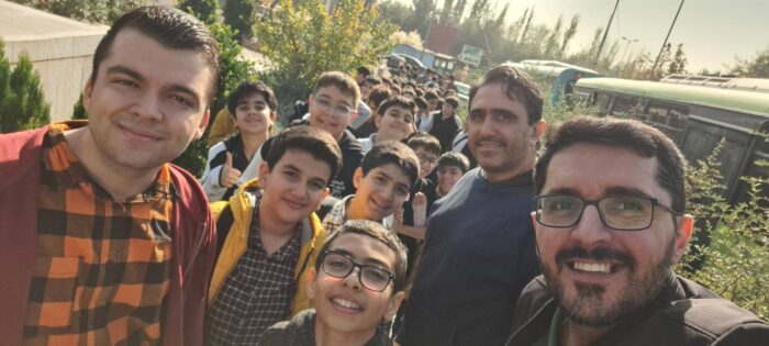 بعد از پایان مراسم صبحگاه بچه های پایه هشتم و نهم به کلاس ها رفتند و بچه های پایه هفتم در تیم های فوتبال، والیبال و بسکتبال تقسیم شدیم و بازی کردیم، بعد از پایان بازی که تقریبا ساعت ۹:۳۰ شده بود سوار اتوبوس ها شدیم تا به سمت باغ کتاب حرکت کنیم.