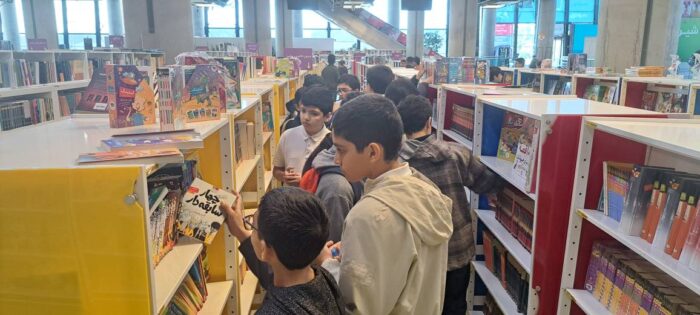 در اتوبوس گروه بندی بچهها را انجام دادیم وقتی به باغ کتاب رسیدیم اول آقای رضایی معلم فارسی درباره اهمیت خرید کتاب و چالش تهیه خلاصه کتاب و توضیح آن در کلاس با بچهها صحبتی کردند، سپس به داخل باغ کتاب رفتیم و هر گروه به یک سمتی رفت؛ در ساعت ۱۰:۴۵ بچهها برای تهیه خوراکی به رستوران ها و کافی شاپ های باغ کتاب سری زدند و بعضی از بچه ها هم در محوطه بیرونی باغ کتاب کلی فوتبال بازی کردند و کلی حال کردند.