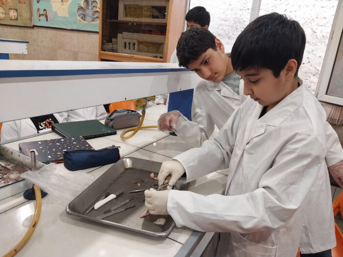 ما در گروههای خود این کار را کردیم و تمام قسمتهایی که استاد فتاح در تشریح خودشان به ما نشان دادند را دیدیم . بعد از همه ی اینها ما با یک وسیله چکش مانند استخوان بال مرغ را شکستیم و مشاهده کردیم که داخل آن پر از خون بود .