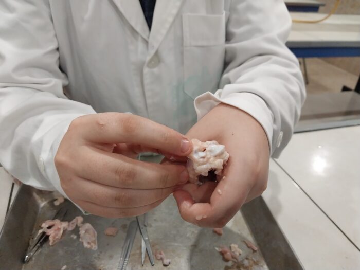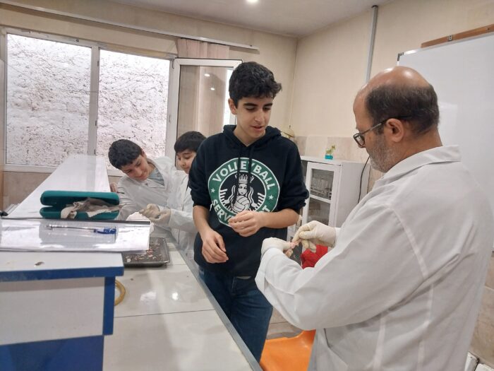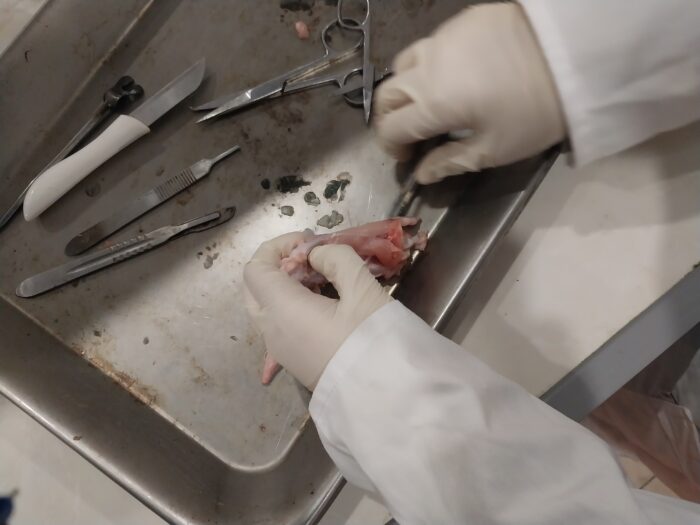 اول استاد فتاح روش تشریح بال مرغ و استخوانها و ماهیچهها و تاندونها و…. بال مرغ را به ما نشان داد و بعد به ما گفتند که در گروههای خودمان بال مرغ را تشریح کنیم .